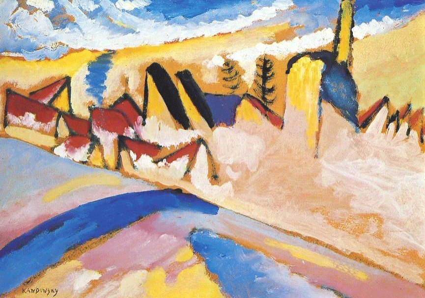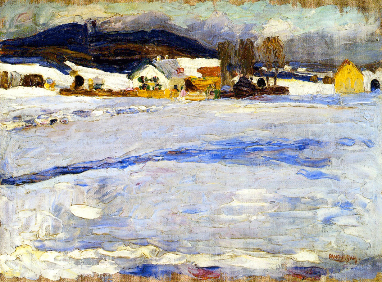 Detail 2 und 4 stammen aus Abb. 2 links: Wassily Kandinsky, "Winterlandschaft I", 1909, Öl auf Karton, Eremitage, St. Petersburg