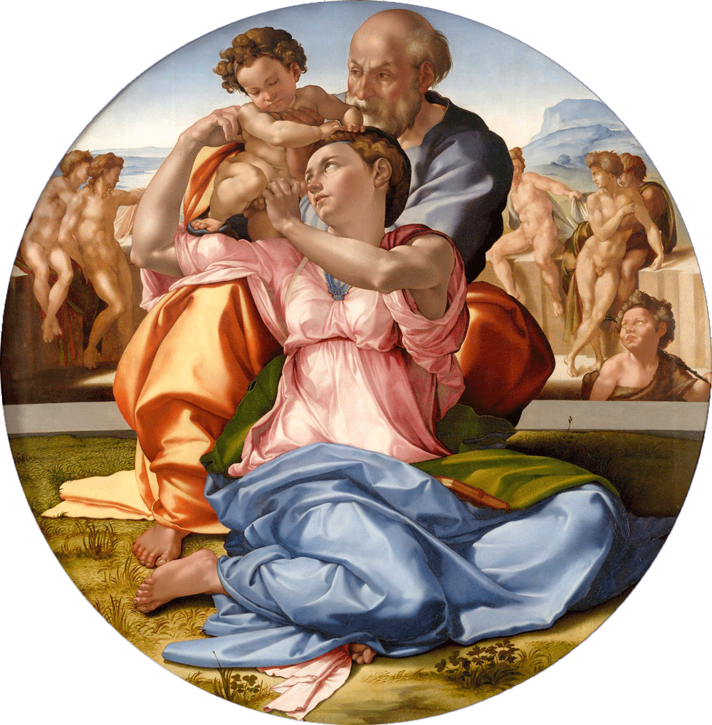 3. Rundes Gemälde oben am Weihnachtsbaum Michelangelo, "Tondo Doni", 1505/06, Tempera auf Holz, Uffizien, Florenz