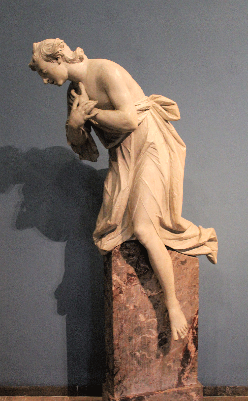 6. Engelsskulptur rechts an der Wand Ignaz Günther, "Anbetender Engel", um 1770, Lindenholz, Liebieghaus, Frankfurt am Main